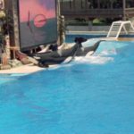 The Shamu Adventure'. Dit is werkelijk waar een prachtige show. En, we hebben goede plaatsen… want we zijn niet nat geworden.