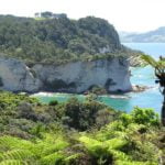 Ik verliet Hotwater Beach om naar de camping in Hahei te gaan, die ook direct aan het strand ligt, en dit strand was niet vol. Vanaf de camping was er een wandeling van 1½ uur naar de Cathedral Cove, een kalkstenen inham. Het was een mooie wandeling met, alweer, prachtige uitzichten. Terug op de camping ontmoette ik mijn buren die me uitnodigen voor de barbecue bij hen. Het was een leuke avond met goed vlees en ladingen wijn.