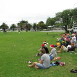 Terug in het hostel was de barbecue klaar. Er was een enorme berg vlees, salades en ander eten. En, zelfs nog beter, de zon kwam door de wolken. We hadden prachtige muziek – er was 1 cd met kertsliedjes die de hele dag herhaald werd. Het was een leuke Kerstdag.