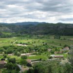 Zaterdag begon ik aan de vierde etappe. Na de Eifel, deel 1 van de Oude Wegen en deel 2 daarvan ben ik begonnen aan de Midden Frankrijkroute. De dag begon direct met klimmen en op enkele afdalingen na bleef het de eerste twintig kilometer omhoog gaan. Ik val in herhaling als ik zeg dat het uitzicht weer geweldig was, dus dat doe ik maar niet. Boven aangekomen kwamen dertig hele snelle kilometers naar beneden tot Vers. Dat was het moment waarop ik het boekje van de Oude Wegen weg kon stoppen en de Midden Frankrijkroute op kaartje 16 open kon slaan. Ik heb maar meteen van de gelegenheid gebruik gemaakt om weer eens een restaurant op te zoeken waar ik voor nog geen twintig euro een driegangenmenu, een fruitsmoothy en een kop koffie op heb.