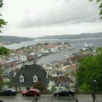 Twaalf uur later werd ik pas wakker. Ik ben naar het dorp naast Midtun gelopen, waar de lightrail (een sneltram) naar Bergen vertrok. Zowaar is het bijna de hele dag droog gebleven. Ik heb de hele dag door de mooie stad gelopen en een stuk van één van de zeven bergen van de stad beklommen voor een mooi uitzicht over de stad.