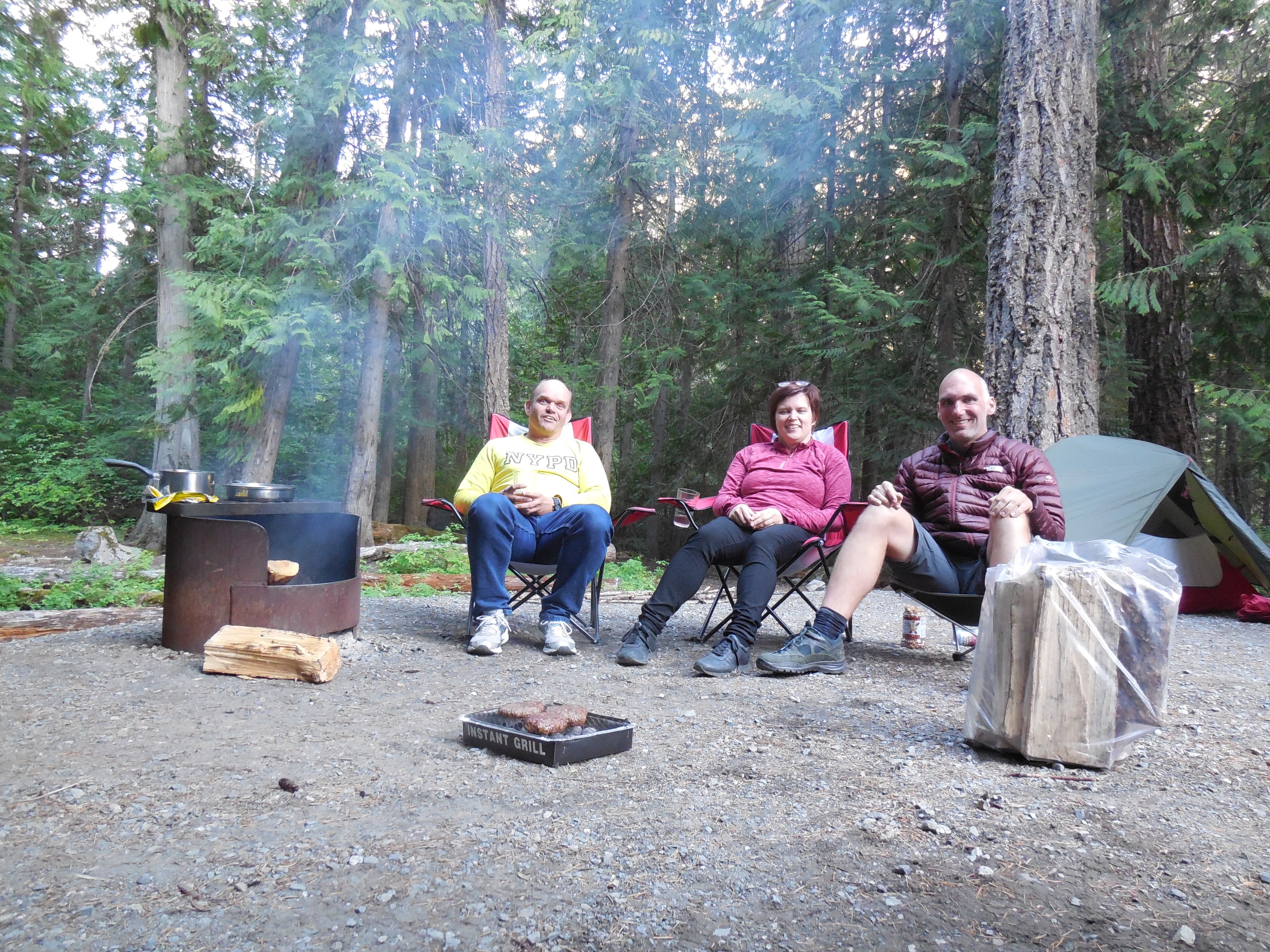 Ik was van plan om naar Whistler te rijden, maar halverwege de rit kwam ik Frans en Anja weer tegen op bij een uitzichtpunt. Onder het genot van een kop koffie besloten we nog een nachtje samen te kamperen en te gaan barbecueën bij Pemberton, een kilometer of 40 voor Whistler. Daar zouden we weer in een provinciaal park zitten waar vast mooie wandelingen te maken zouden zijn.