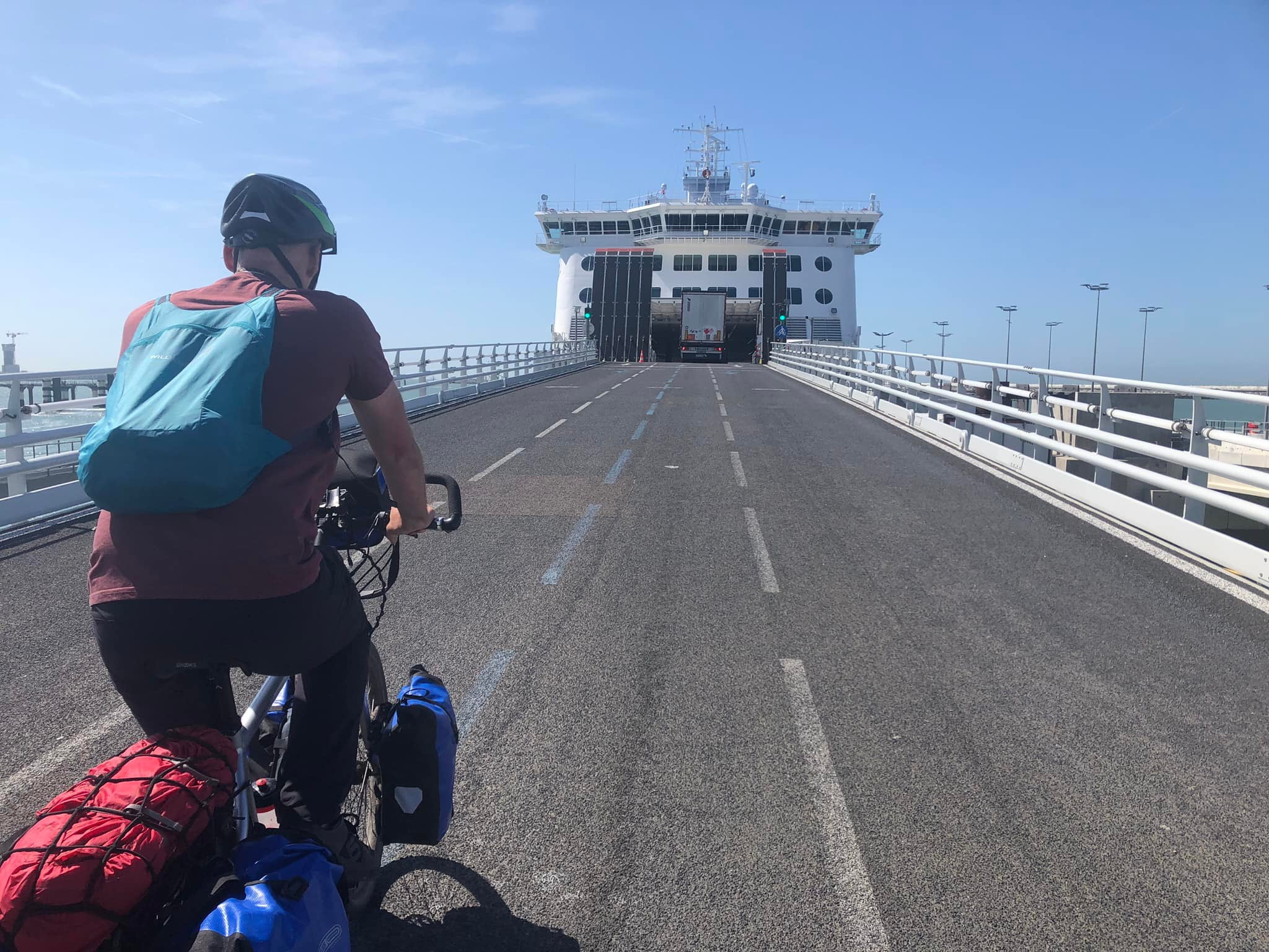 We laden de fietsen van de auto en zadelen deze op met onze tassen. Binnen 10 minuten zijn we weg. We rijden door een troosteloos stuk Calais. Overal staan bouwsels van zwervers. We doen boodschappen voor vanavond en rijden richting boot.
