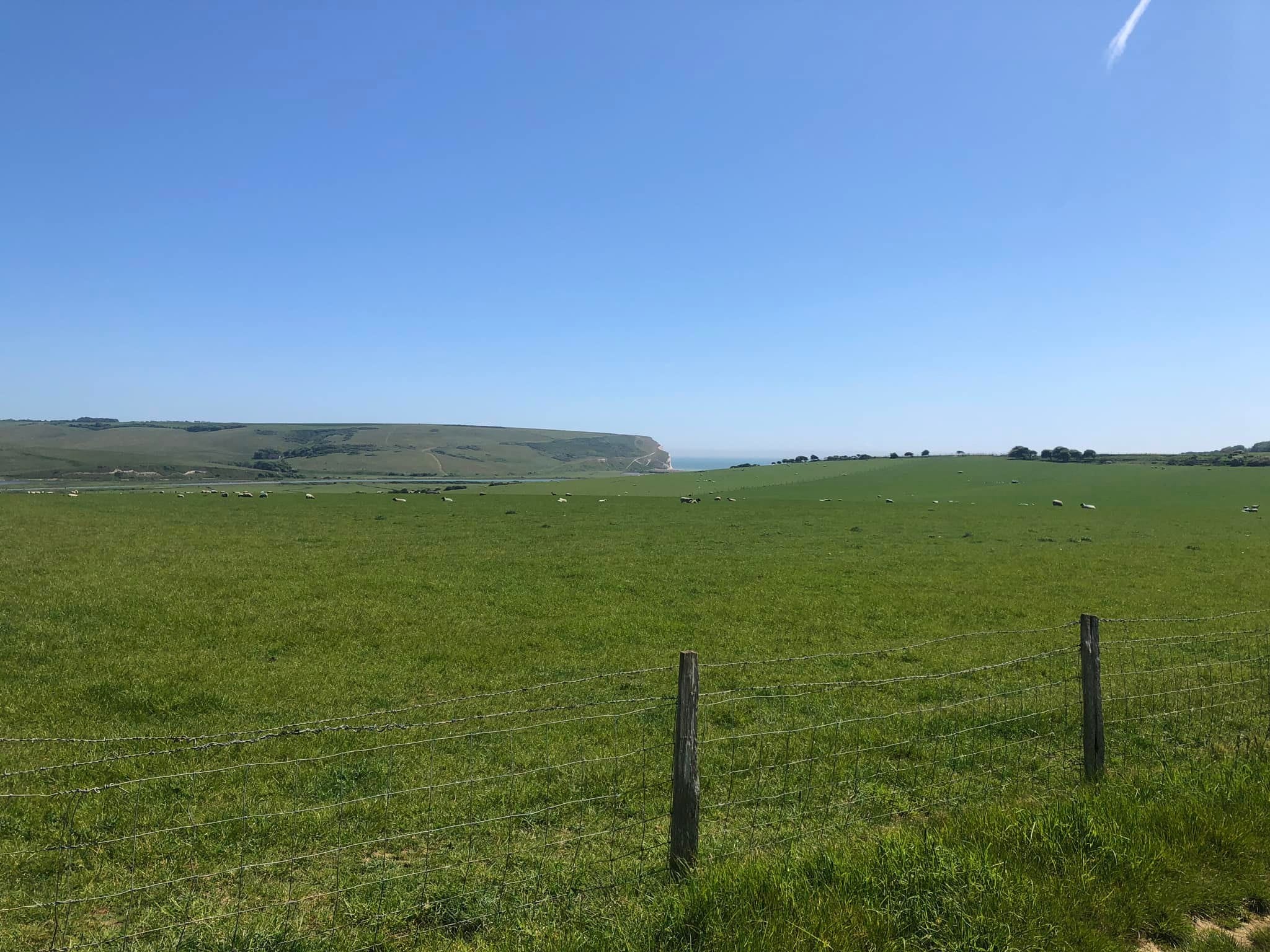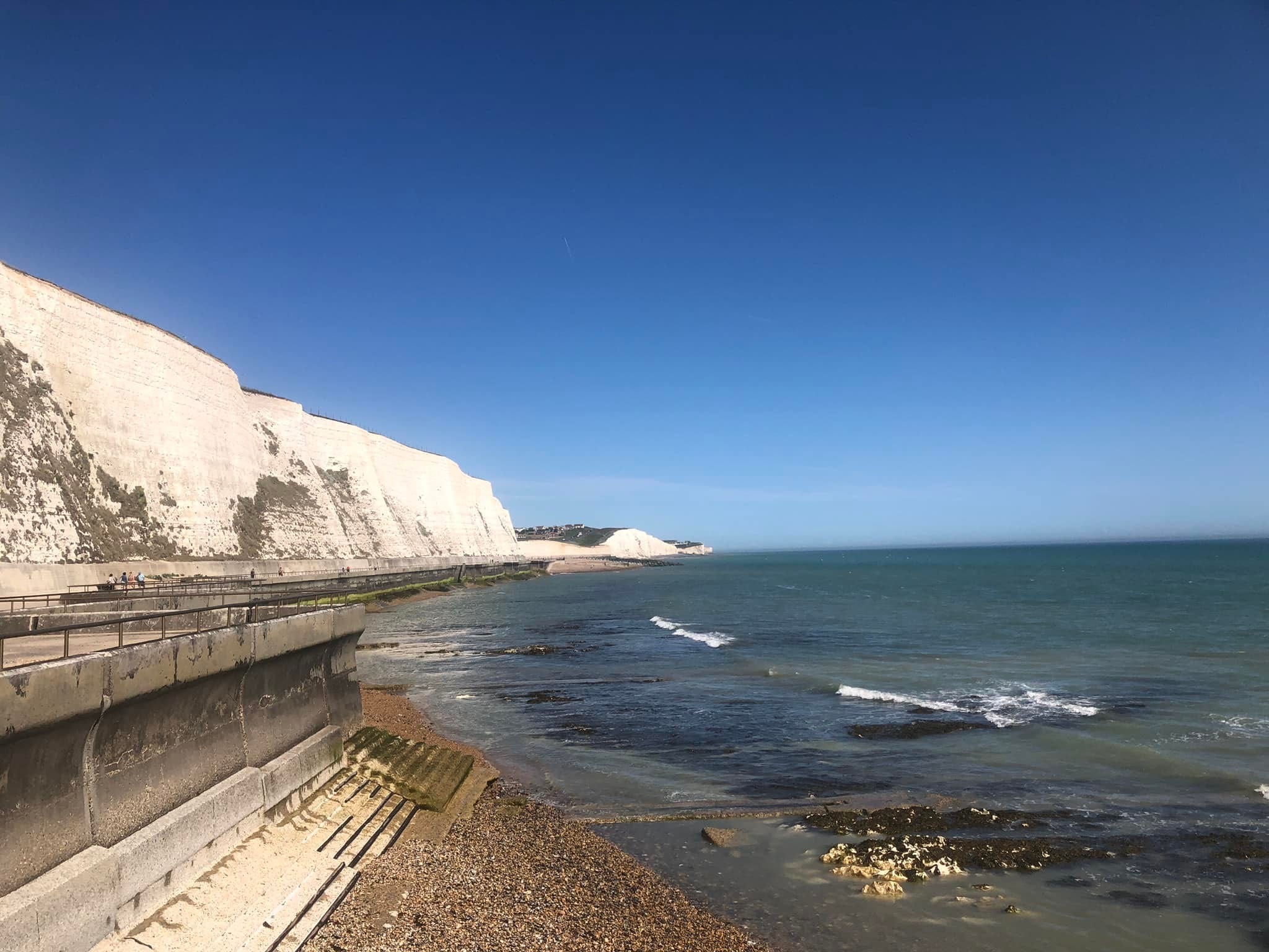 Daarna weer verder omhoog, maar nu weer fietsbaar. Marc stond me op de top aan te moedigen. We waren aangekomen bij Beachy head. Vanaf daar gingen we met 70km/u naar beneden. Bij een uitzichtpunt dronken we koffie en genoten van het uitzicht. Terwijl ik ons plekje bezet hield zag ik van een afstandje een andere fietser onze fietsen een nadere inspectie te geven. Heel grappig om te zien.