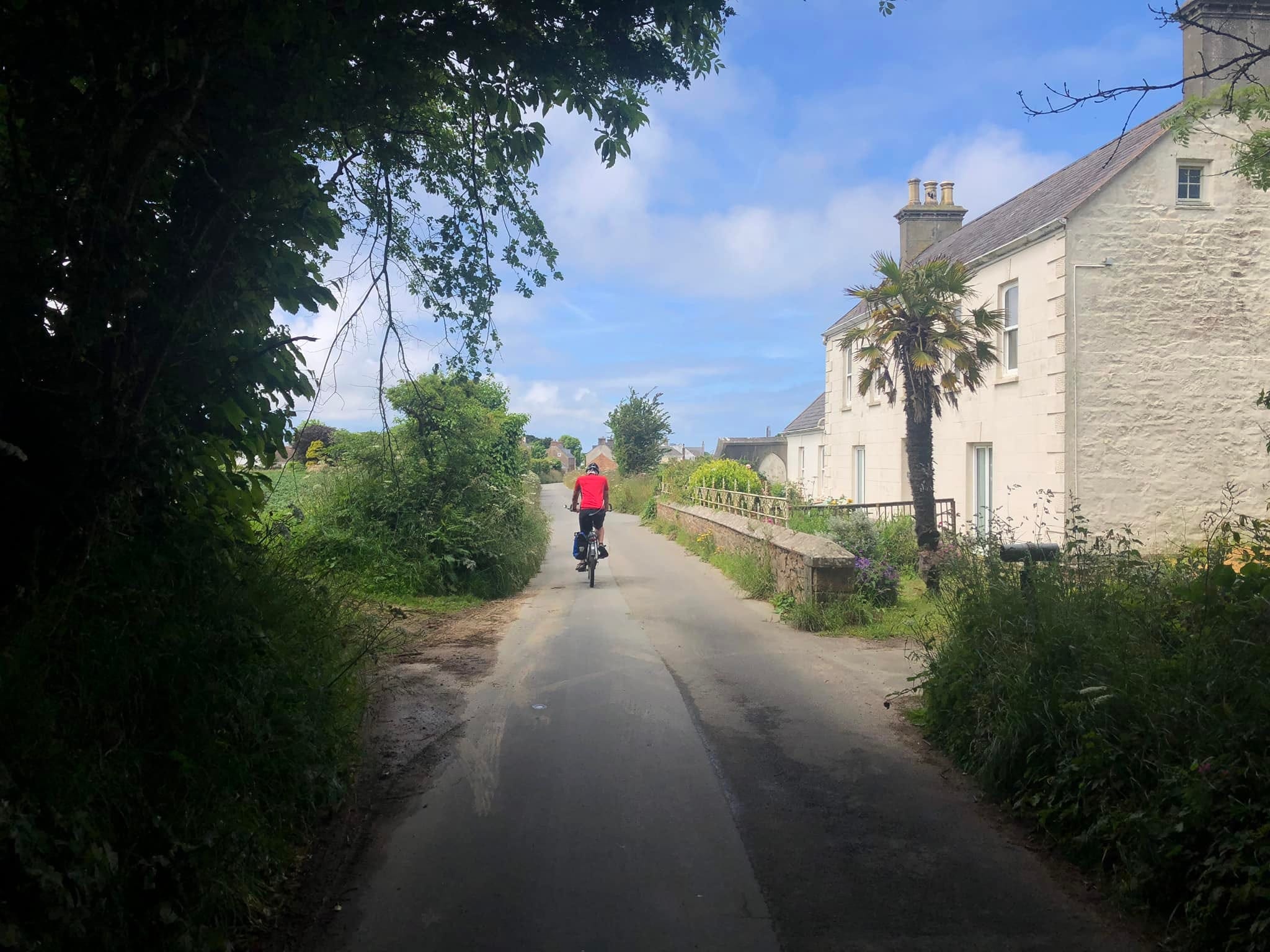 We fietsen verder naar het noordwesten van het eiland. Ik ben nog niet helemaal fit, buikkrampen spelen regelmatig op. We fietsen langs kleine dorpjes (gehuchten) en langs een heleboel aardappel velden. Aan weerszijde van de wegen weer de bekende wallen begroeid met struiken en grassen. Ik begin ze nu te ruiken dus dat betekent dat ik binnenkort wel last ga krijgen van hooikoorts.