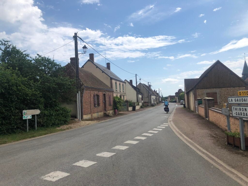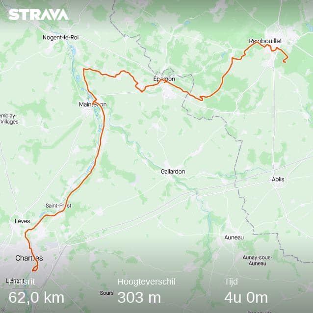 Het zat me niet mee vandaag. Vol goede moed begonnen we aan onze tocht naar Chartres. Maar na 3 uur fietsen waren we nog geen 20 km opgeschoten. Bijna alles was heuvelop en dat is gewoon niet mijn beste / snelste kant. Ik kom er wel, maar het duurt lang en soms gaat het me te langzaam en vind ik omhoog fietsen eigenlijk best wel saai. Het streven om rond lunchtijd halverwege te zijn was dus bij lange na (1/4e deel) niet gehaald. Dat zorgt bij mij wel voor een psychologisch dingetje. Daarnaast was het verschrikkelijk benauwd. Als we een bos inreden, kwam de walm met vocht je tegemoet. 28 graden… pffff!