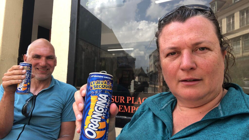 Een kwartier later fietsen we door Sandarville. Zoals veel Franse dorpen het betaamd heeft deze een stadspomp, of tegenwoordig een openbare kraan met (meestal) koud drinkwater. Ik neem voor de 3e keer vandaag nieuw water en ik spet water in mijn gezicht. Een beetje afkoelen!