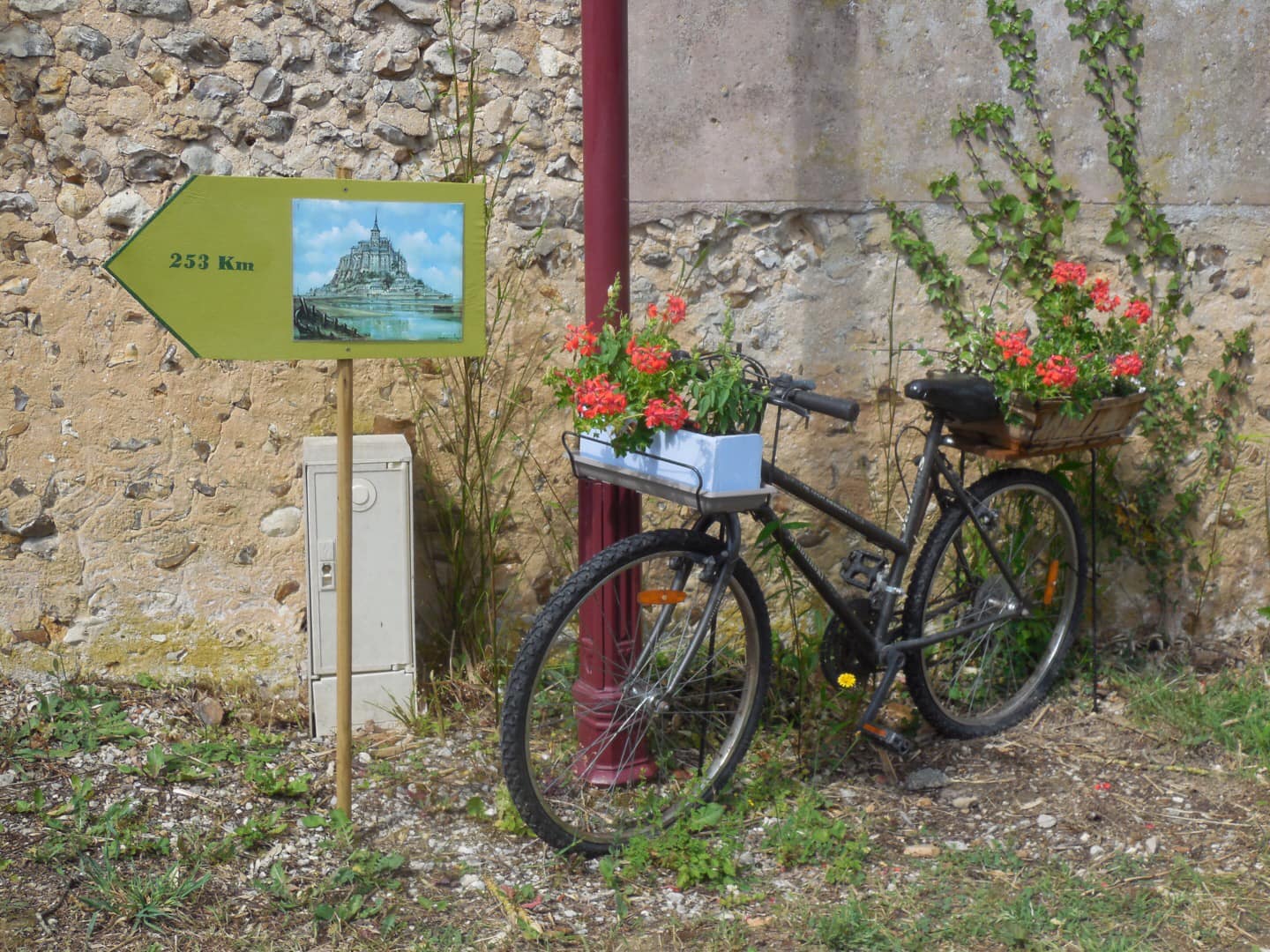 Een kwartier later fietsen we door Sandarville. Zoals veel Franse dorpen het betaamd heeft deze een stadspomp, of tegenwoordig een openbare kraan met (meestal) koud drinkwater. Ik neem voor de 3e keer vandaag nieuw water en ik spet water in mijn gezicht. Een beetje afkoelen!