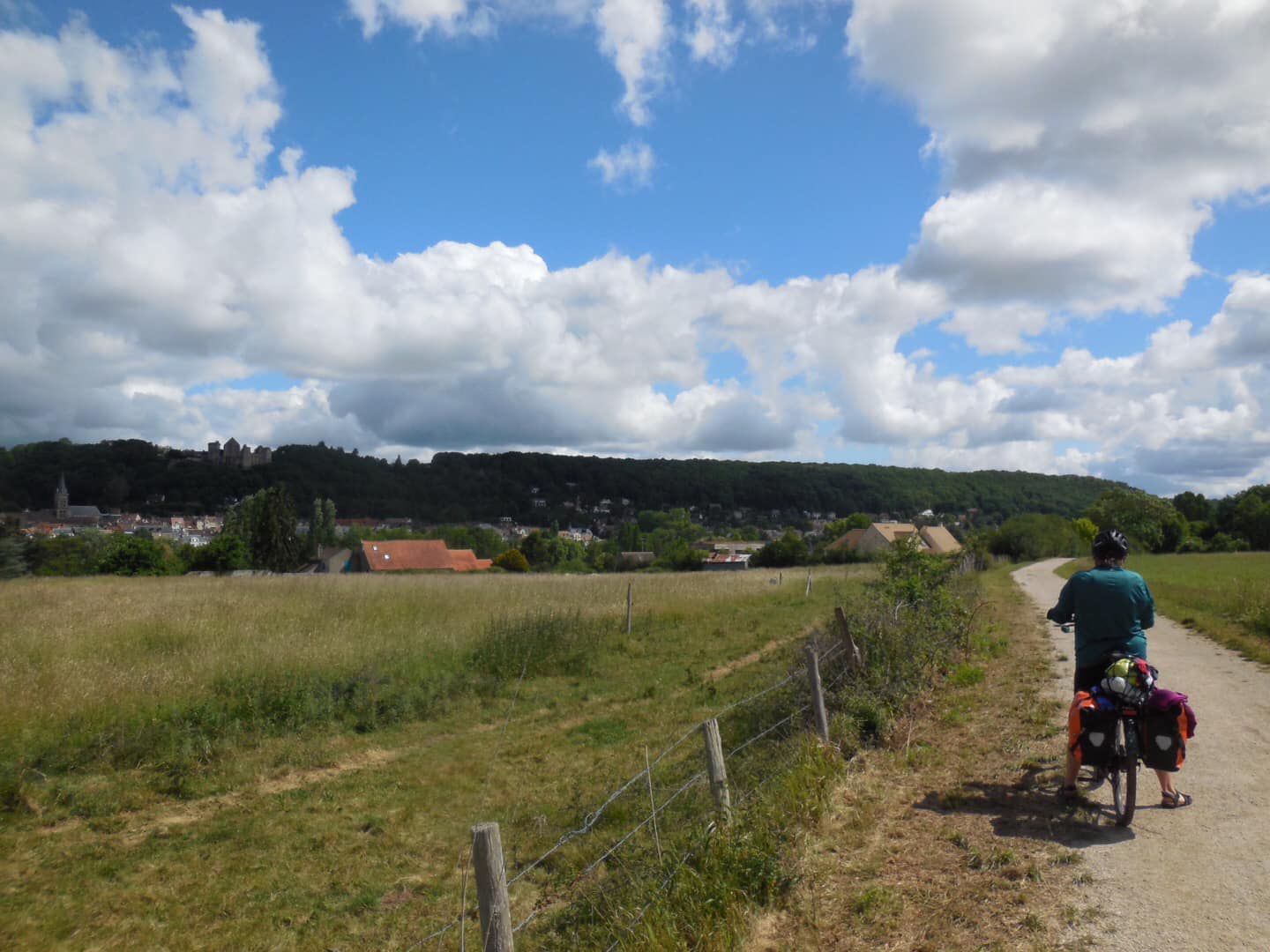 We zijn er bijna voor vandaag en het fietsen gaat lekker. We worden bijna van onze fiets getrokken door een Fransman die ging vertellen over zijn eigen tocht langs de Veloscenie. En waar we vandaan kwamen en naar toe gingen.