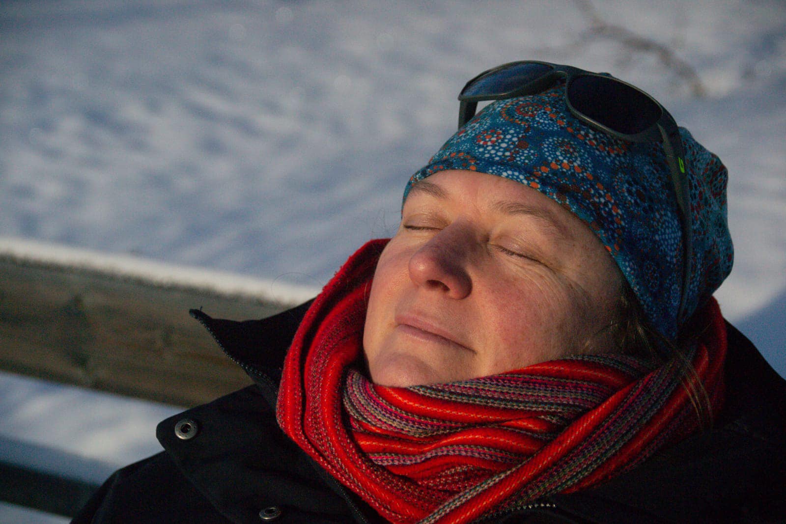 Rond het middaguur wil ik mijn knie wel weer wat rust gunnen, dus gaan we weer naar het hotel. We lunchen in de lobby en lezen wat. Daarna roept mijn bed me toch heel hard voor een middagdutje. Ik word zó moe van dat koude weer! Terwijl ik lekker lig te lezen en in slaap val, duikt Marc de sauna in. Als ik drie keer in mijn slaap de wekker heb uitgezet, maakt Marc me wakker. We spelen spelletjes in de lobby. Een heerlijk rustige dag. We kletsen wat over het gekke fenomeen dat het rond 14 uur het begint te schemeren. Maar die periode totdat het donker is, duurt echt heel lang.