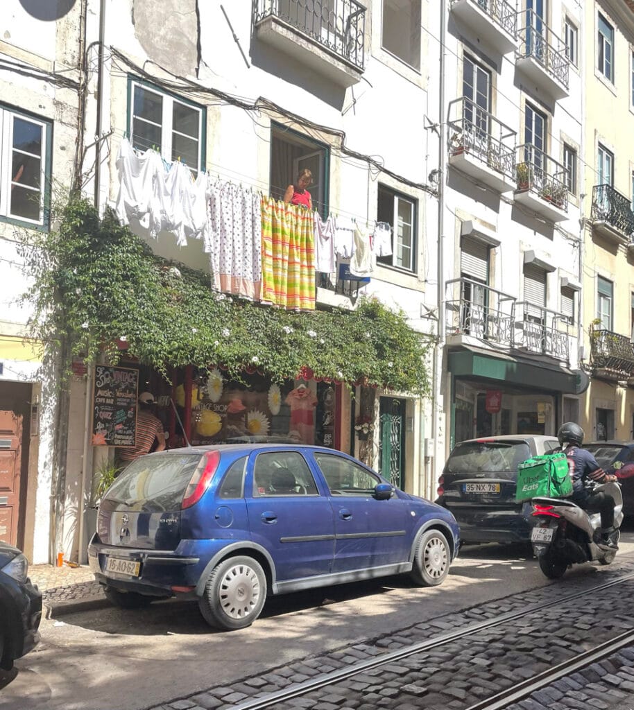 Na het ontbijt wandelen we naar Bairro Alto en Cais do Sodré. We wandelen door kleine, nauwe straatjes waar amper de tram doorheen kan. Overal hangt was buiten. Er staan lange rijen voor koffietentje. De tentjes zijn soms zo klein dat er maar 8 mensen in passen. De rest staat buiten op hun beurt te wachten.