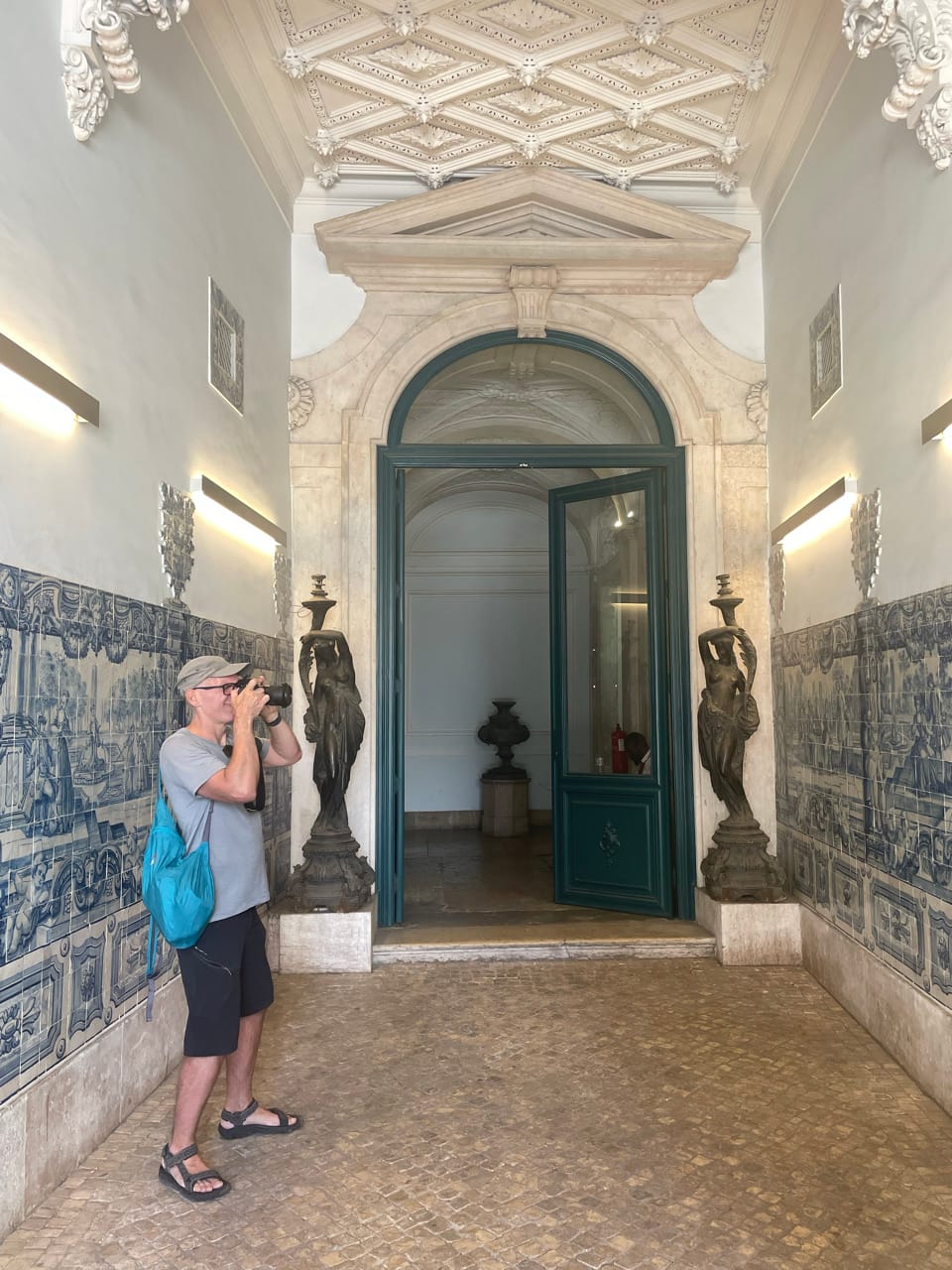 In de wijk Cais do Sondré voel ik me niet helemaal happy. Overal de zurige geur van urine. Ik voel me niet lekker. We strijken neer op Placa Dom Luis I in strandstoelen. Ik voel me echt niet goed dus we lopen verder. Op de lunchmarkt is het een drukte van jewelste. Maar geen trek. We kopen een broodje in de supermarkt, maar die krijg ik op een pleintje niet binnen. Weer overal urinelucht. Ik loop te kokhalzen en niet veel later zie ik mijn eten van gisteravond op straat liggen…