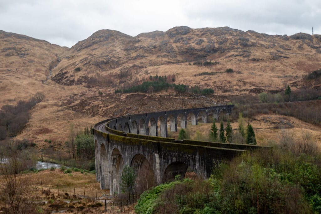 Daarna zijn we naar Glanfinnan, waar de trein over een bogen brug door de vallei rijdt. Onder Potterfans is deze ook wel bekend als de brug naar Hogwarts. Mooi bouwwerk waar ik als bouwkundige wel blij van wordt. Maar ook het uitzicht is er prachtig.
