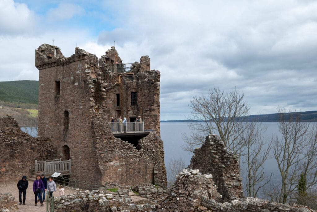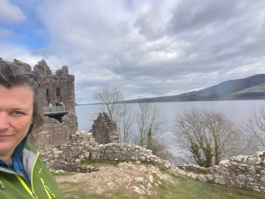 We bezoeken Urquhart Castle tussen de busladingen door. Een mooie plek langs Loch Ness. Jammer, grappen we, dat het kasteel na 800 jaar nog steeds niet af is…
