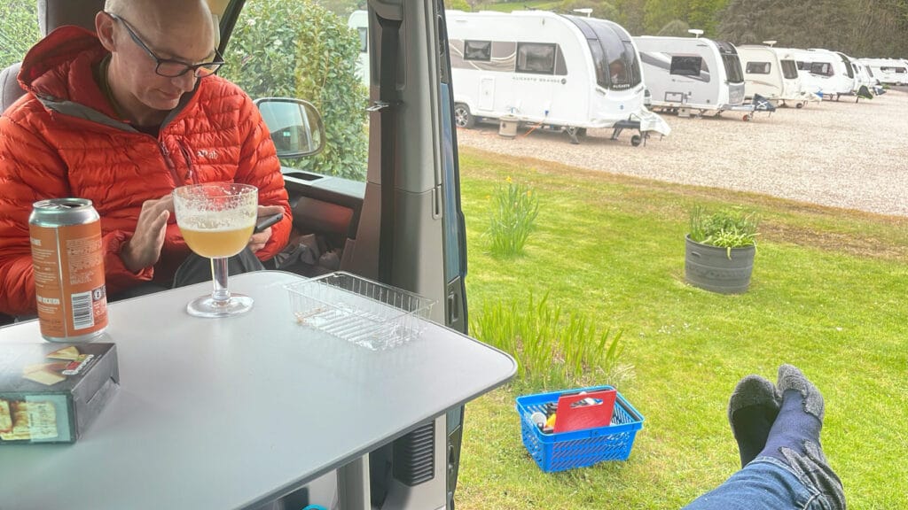We slingeren over de wegen van Cairngorms en rijden uiteindelijk de Highlands uit. Nabij Stirling rijden we de camping op. Een enorm groot terrein met haast alleen maar grind. Tegelwippen kennen ze nog niet op deze camping. Ondanks de drukte qua campers en caravans is het er heerlijk rustig en hebben we mooi uitzicht op de heuvel achter de camping met jawel, gaspeldoorns.