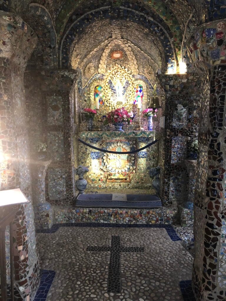 Rond een uur of 16 worden we allebei wakker. Vanaf de camping lopen we een rondje. Er blijkt een cache te liggen waar we naar toe lopen. Deze ligt bij The Little Chapel, zo blijkt. Een klein kapelletje is gebouwd, gesloopt en herbouwd (want te klein!) in 1913. Sindsdien is het al diverse keren gerestaureerd. Ik geniet van de mozaïeken en de sfeer. Daarna lopen we terug naar de tent, gaan koken en uitgebreid douchen onder de douche met de lekkerste straal tot nu toe!